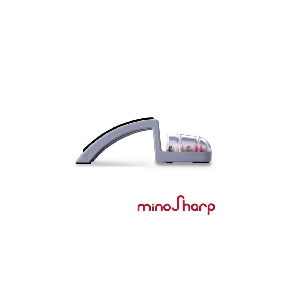 Affilatore con due ruote in ceramica, una con grana media ed una con grana grossa.
