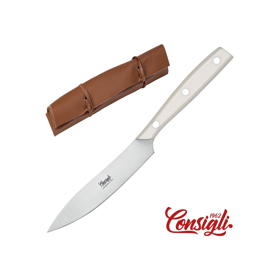 Set di 6 pezzi coltello tavola e bistecca, lama liscia tagliata al laser con manico in Metacrilicato Arancio. Scatola regalo. Made in Italy